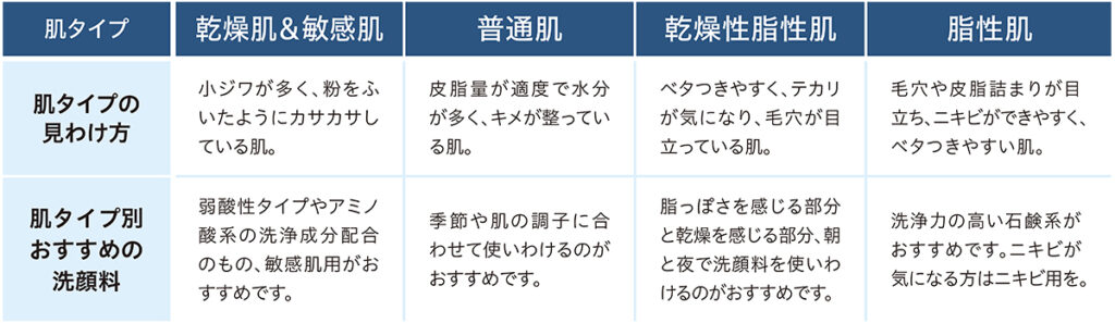 自分の肌タイプに合わせて正しい洗顔料を選びましょう。