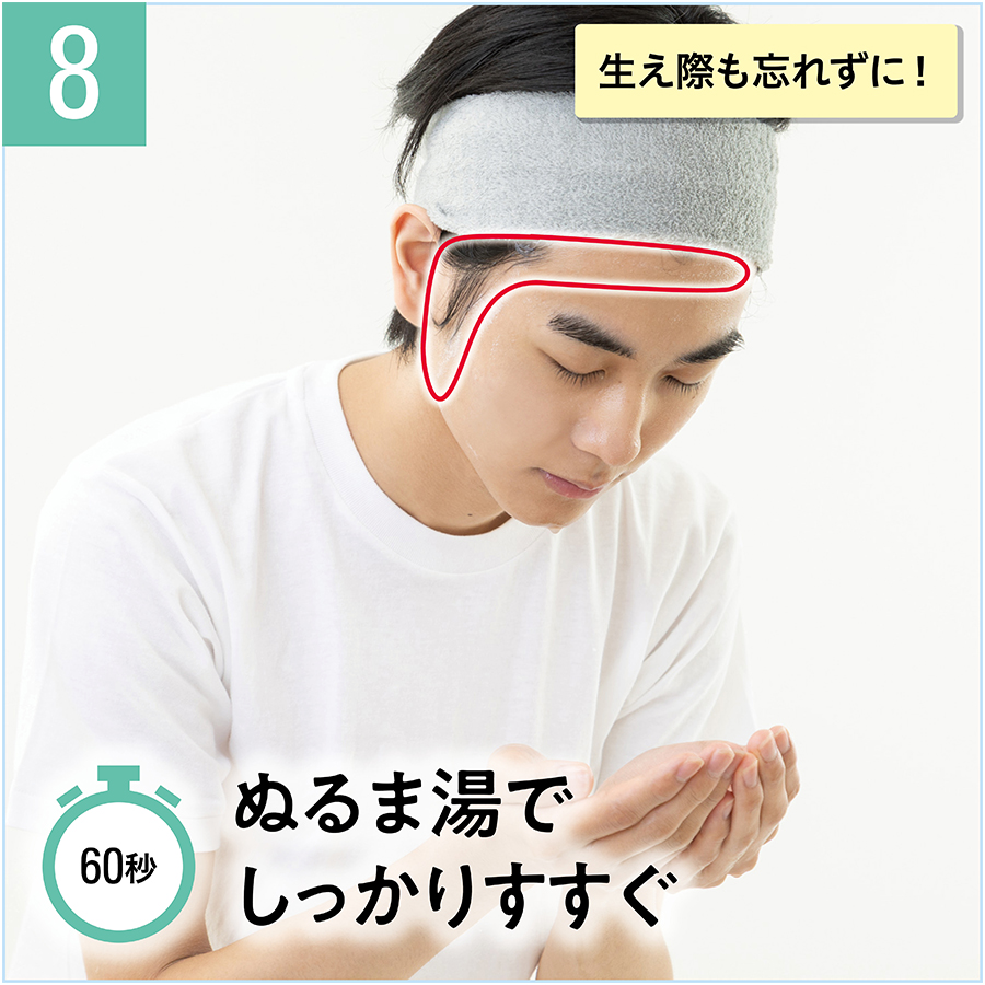 手順の時間は目安です。洗顔は長ければ良いというわけではなく、長すぎると肌への負担となるので注意を。