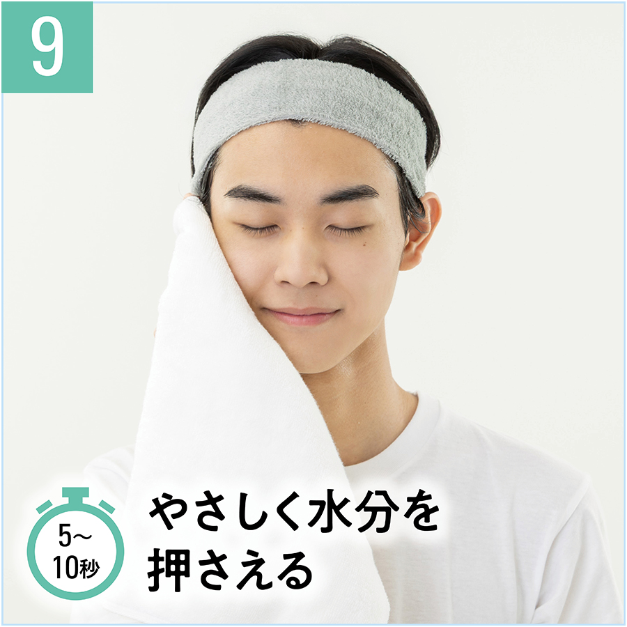 清潔なタオルをやさしく肌に当て水気を吸いとります。タオルでゴシゴシとこするのはNG!