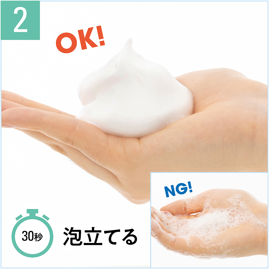 水分が多すぎたり、洗顔料の使用量が少ないと泡立ちが不十分になるので注意!