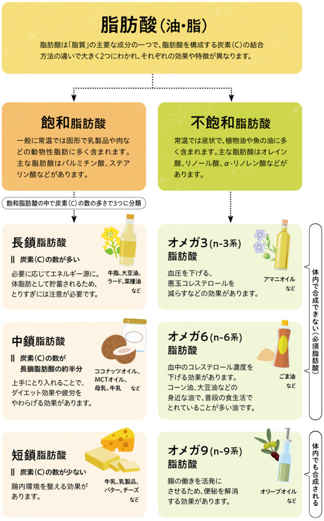 たんぱく質・糖質に並ぶ3大栄養素の一つである「脂質」。カロリーを気にして敬遠されがちですが、美容と健康に欠かせない栄養素でもあります。正しい知識をもって、上手にとり入れましょう。